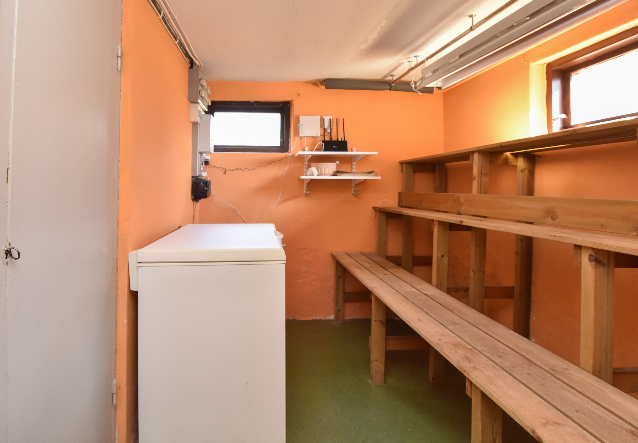 Stort rum på källarplan.
