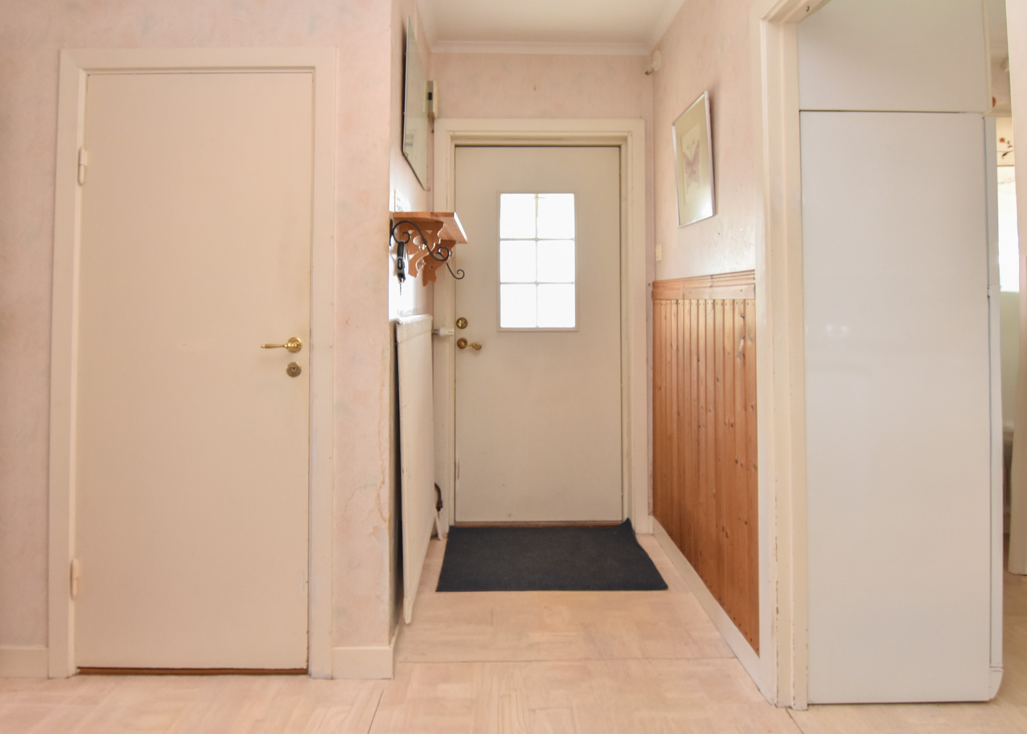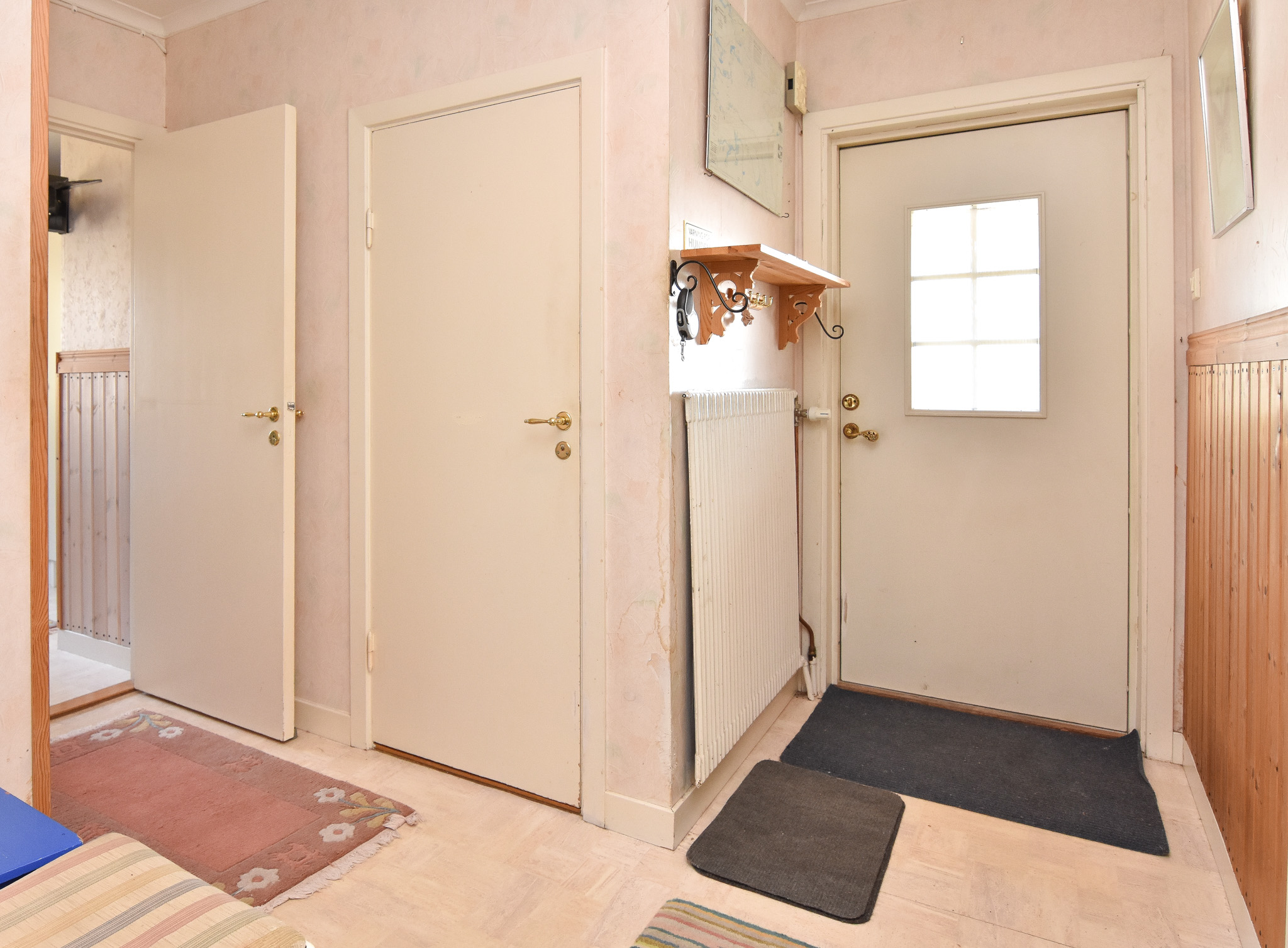 Välkomnande hall med plats för kappavhängning