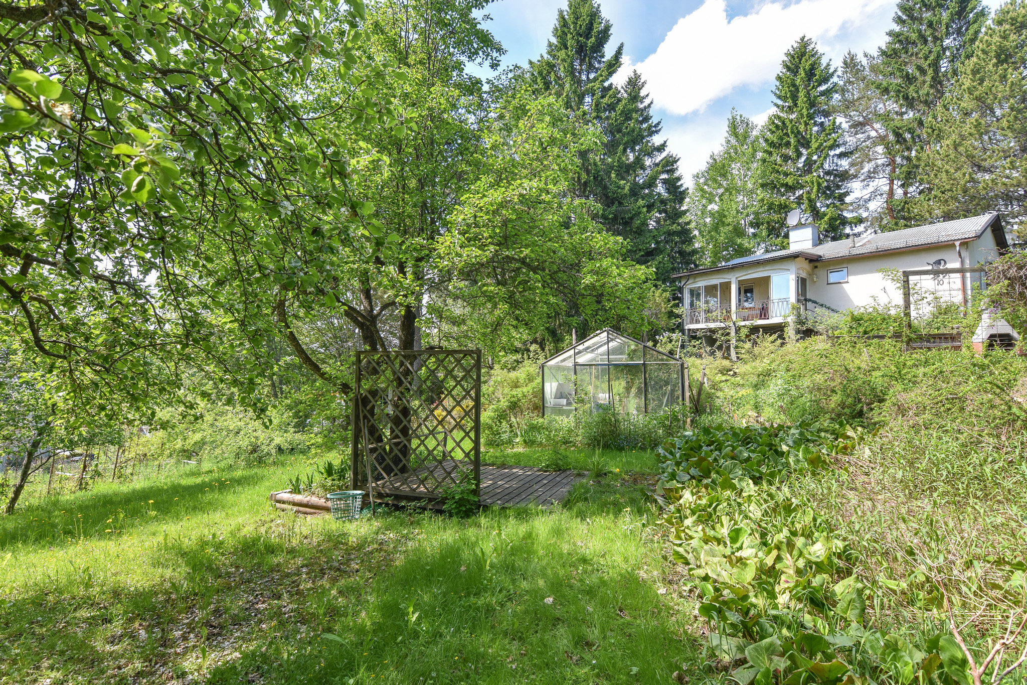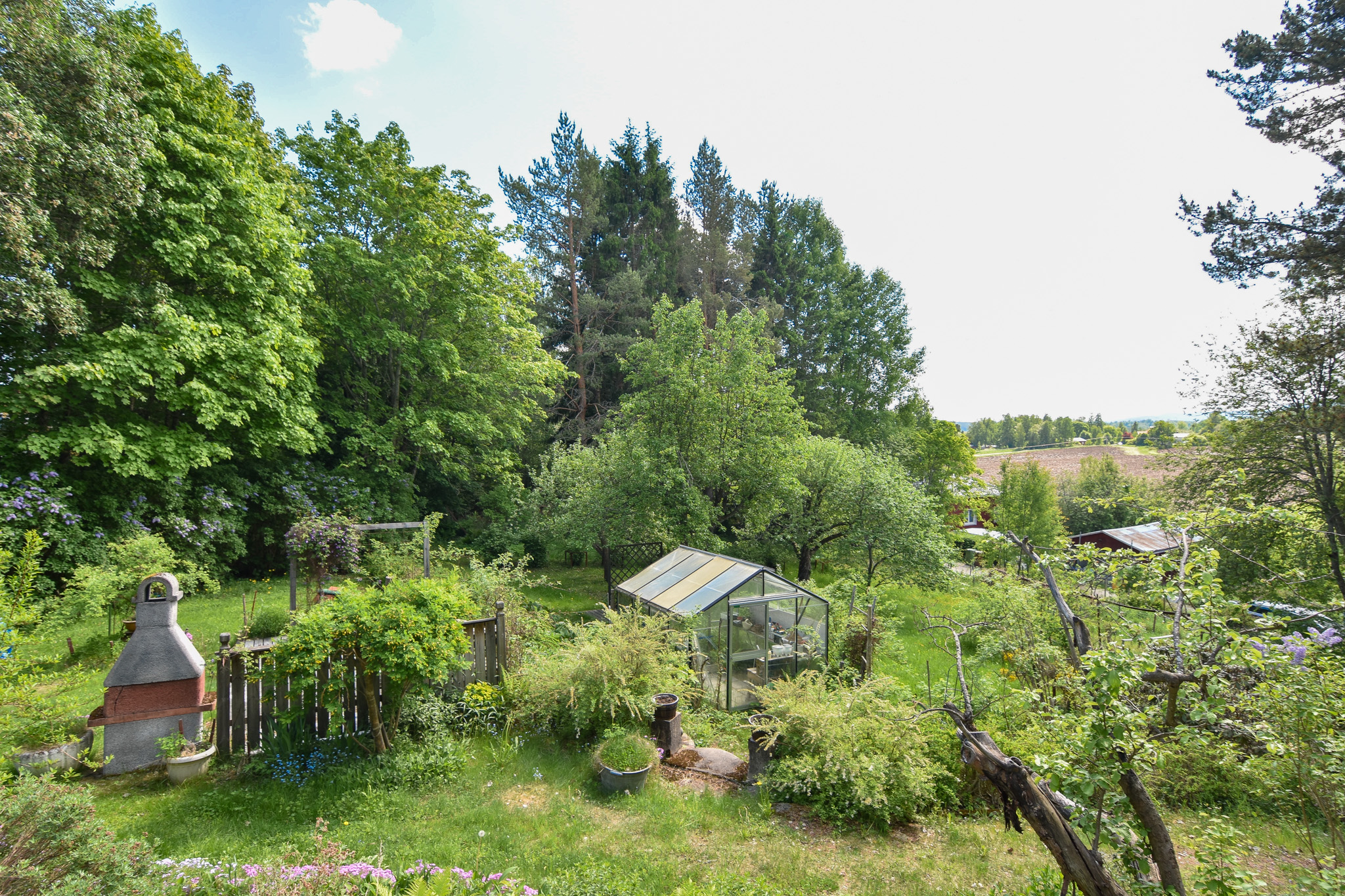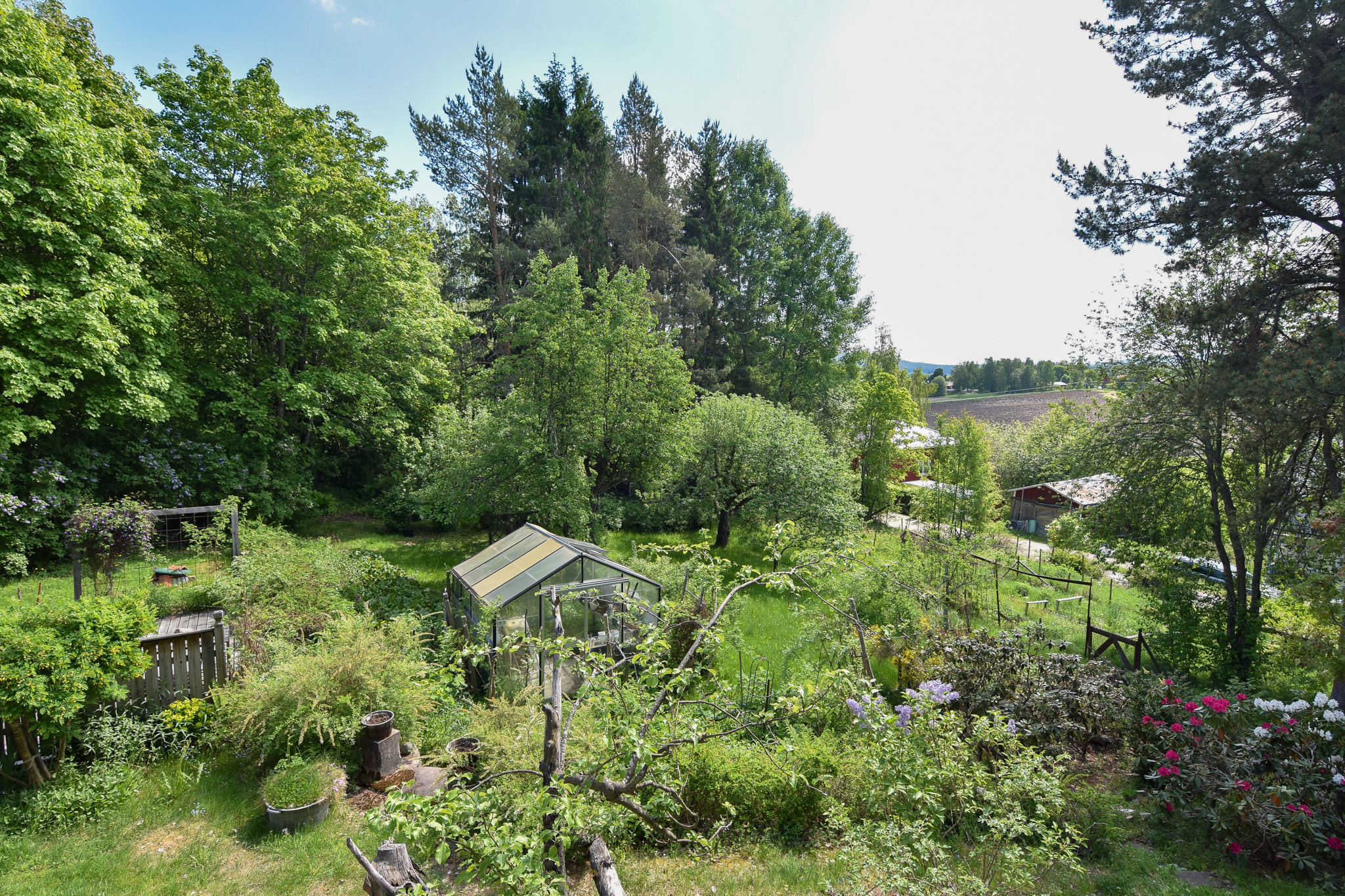 Stor vacker trädgårdstomt (tidigare anlagd av trädgårdsarkitekt) med fruktträd, hundratals perenna växter, trädgårdsland och bärbuskar samt ett stort växthus. En dröm för dig som älskar att odla!