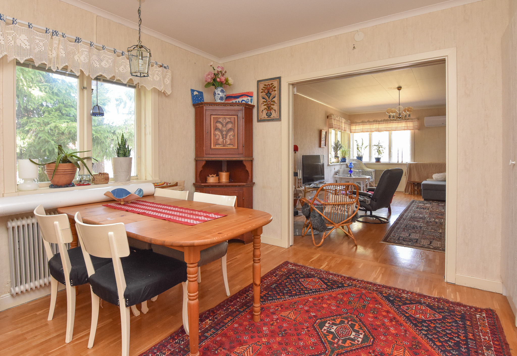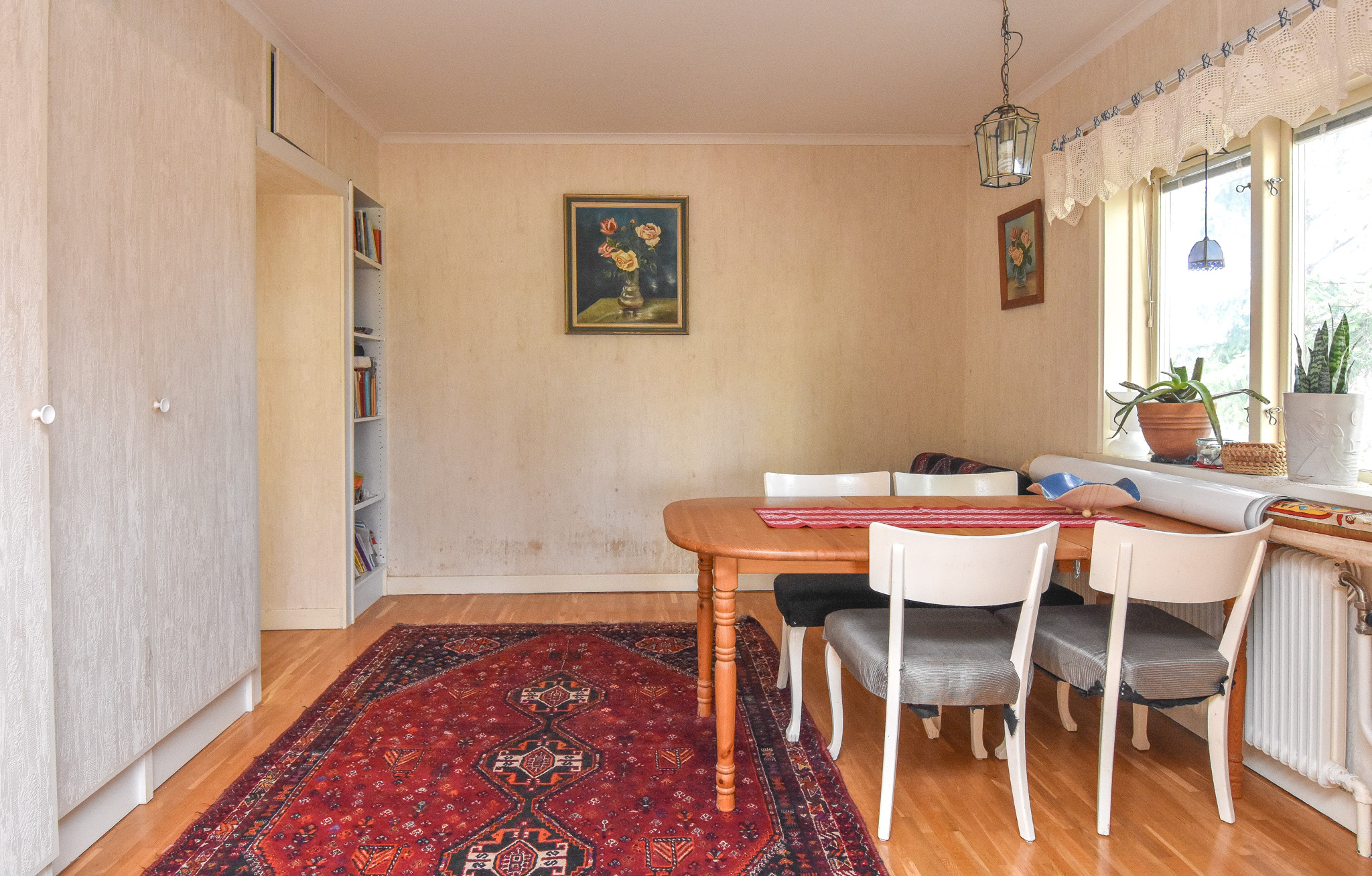 Rymligt allrum med garderobsvägg och plats för en stor matgrupp eller ett ytterligare sovrum.