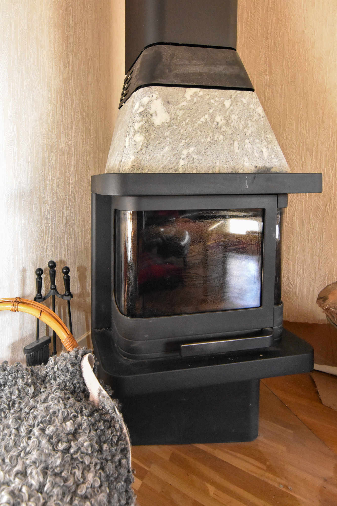 Stort härligt vardagsrum med braskamin