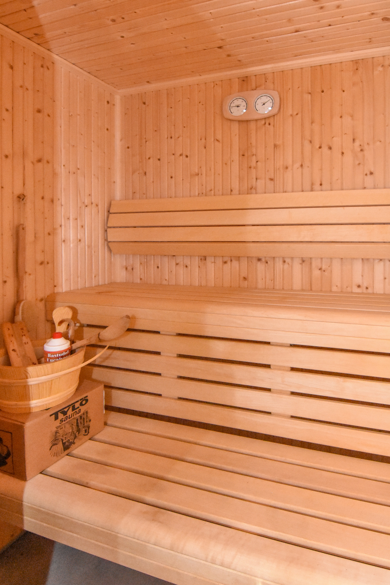 Stor tvättstuga med bastu, här finns även utgång till framsidan