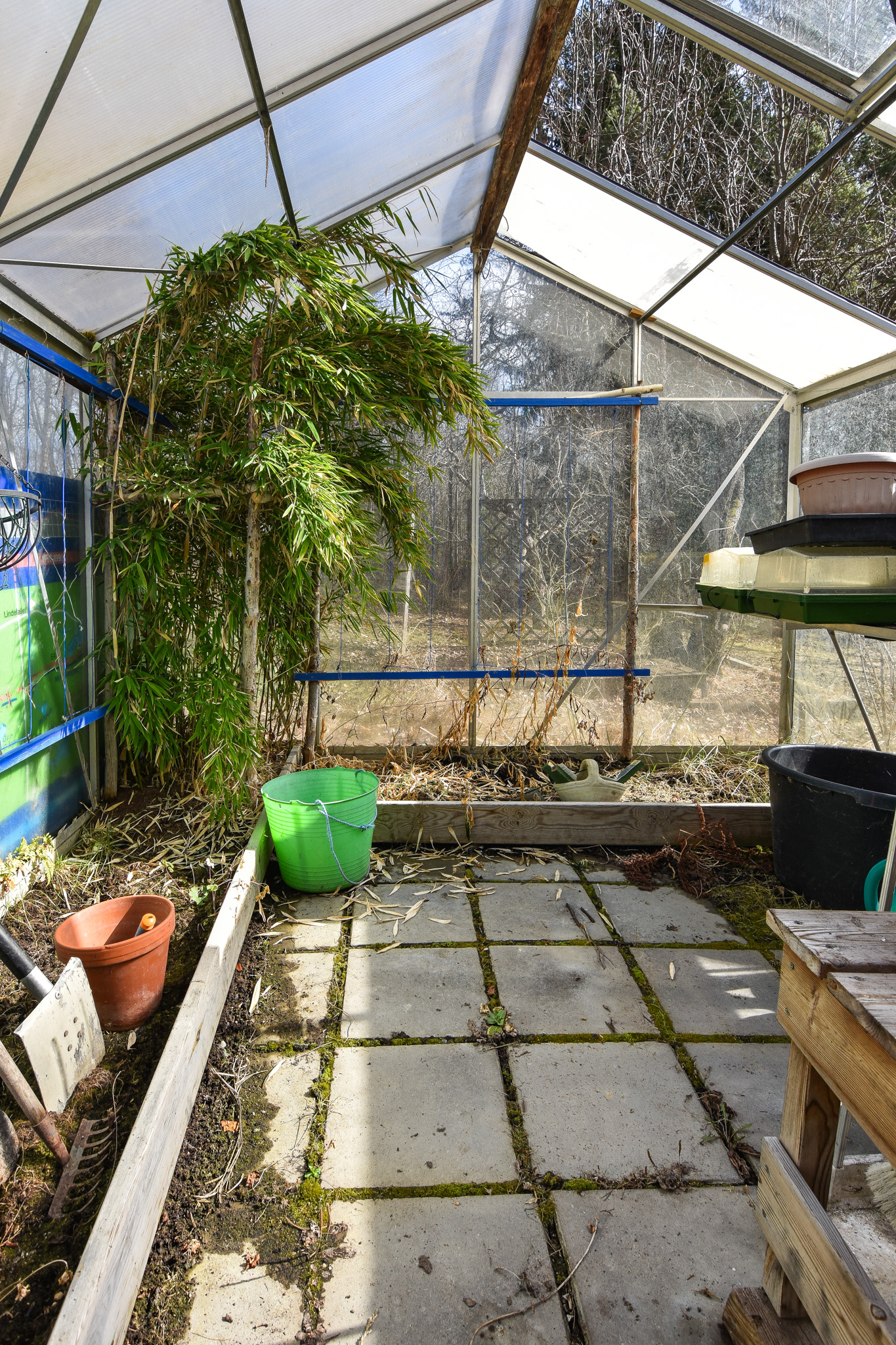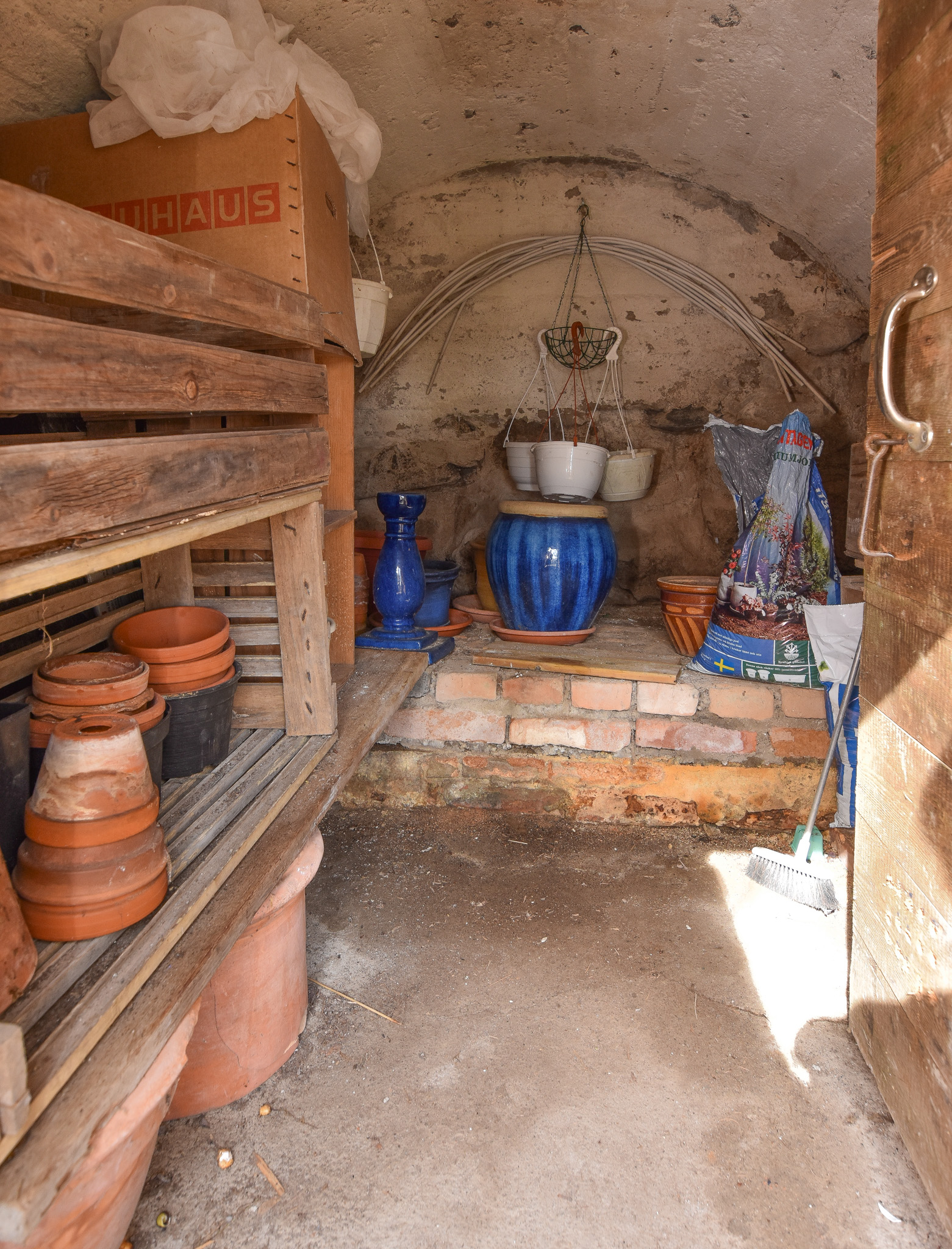Fristående byggnad med förråd, redskapsbod och vedbod. Växthus. Jordkällare.