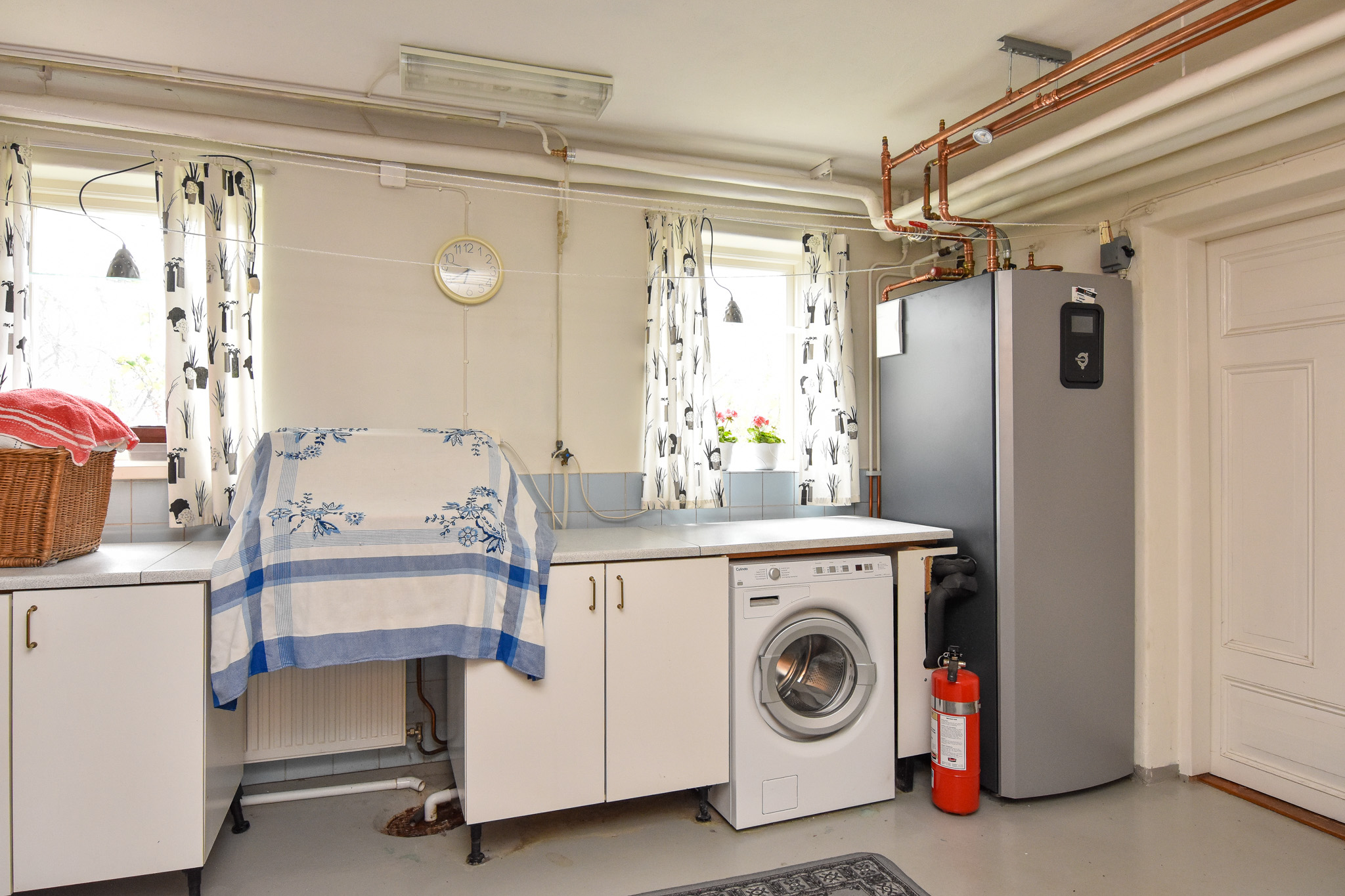 Tvättstuga med tvättmaskin samt tvättho. Här finns även bergvärmepump och en nybyggd, fräsch bastu.